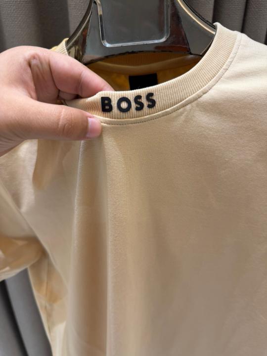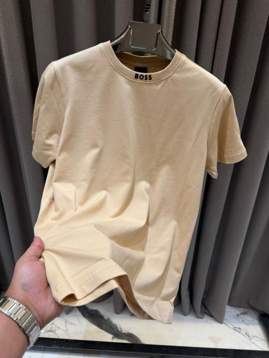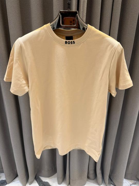 Boss Chinese Collar Round Neck T-shirt Beige