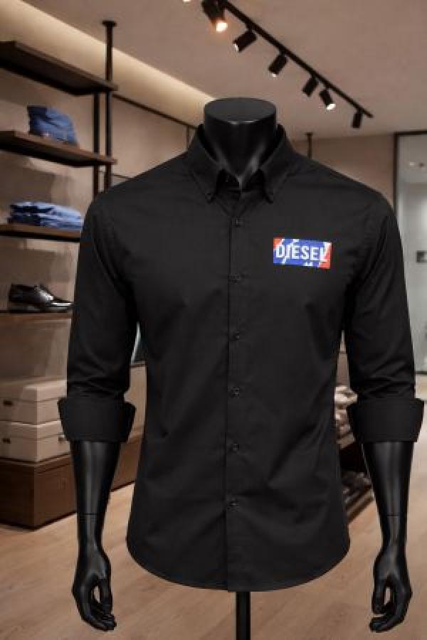 Diese_l Middle Brand Print Full Sleeves Shirt Black