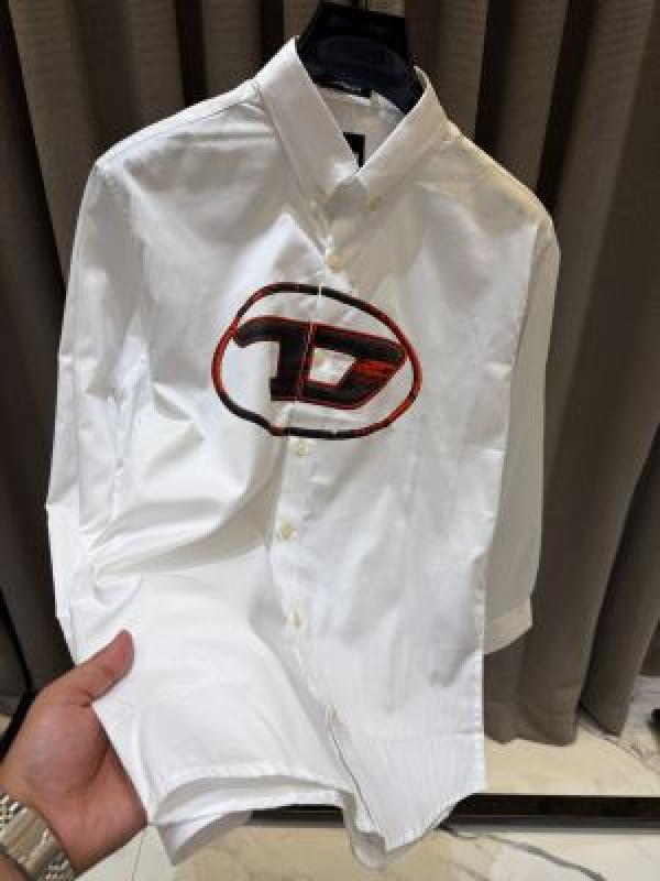 Home Shirts Diese_l Middle Brand Logo Full Sleeves Shirt White