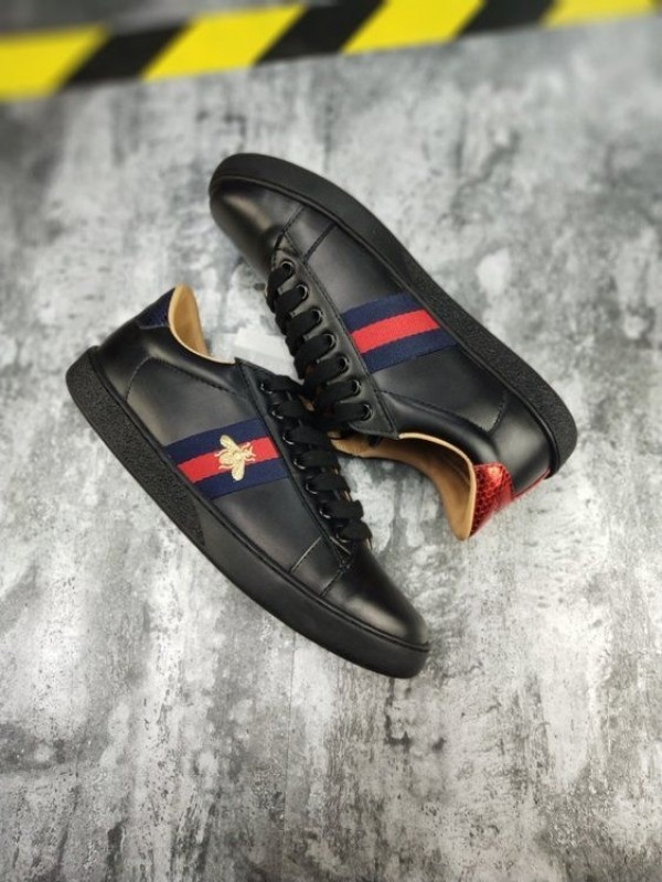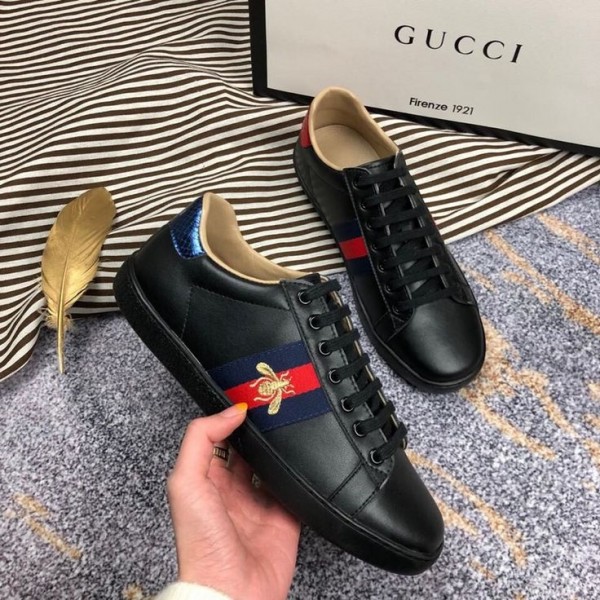 G_ucci black leather ace embroidered bee low