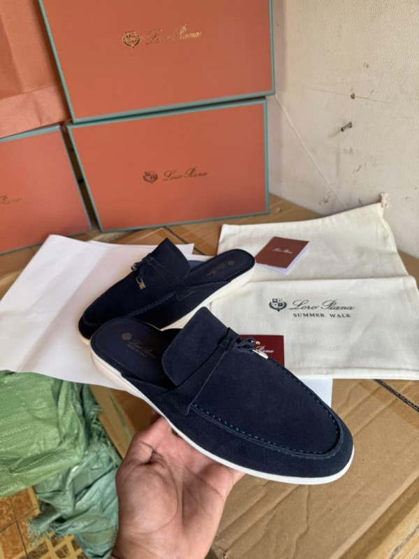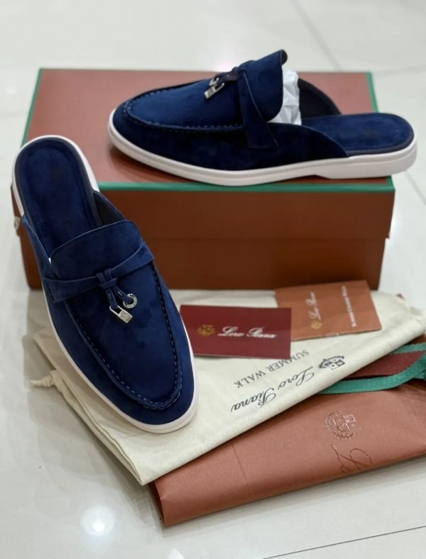 L_oro Piana Babouche Loafers Navy Blue