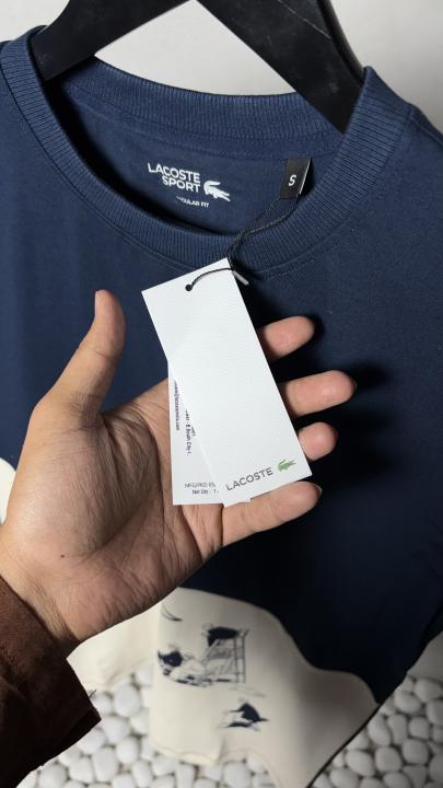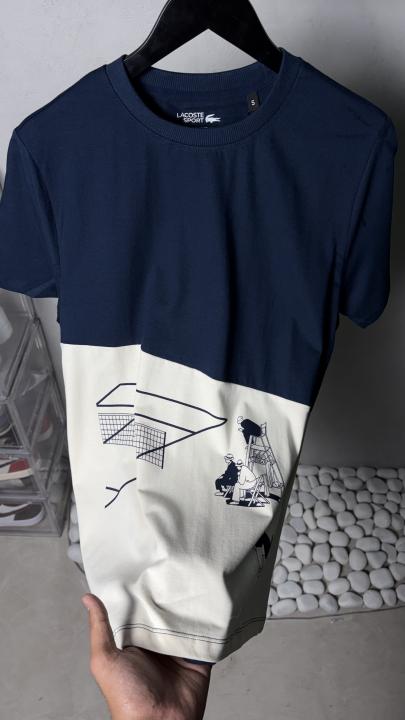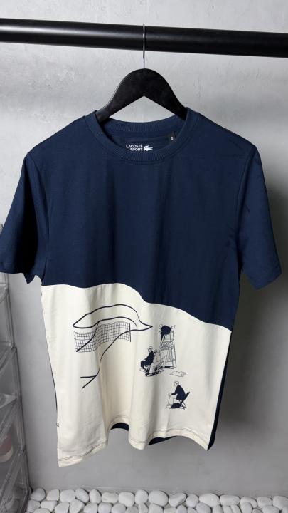 Home T-Shirts Lacost_e Sport Graphic T-Shirt Navy & White1236