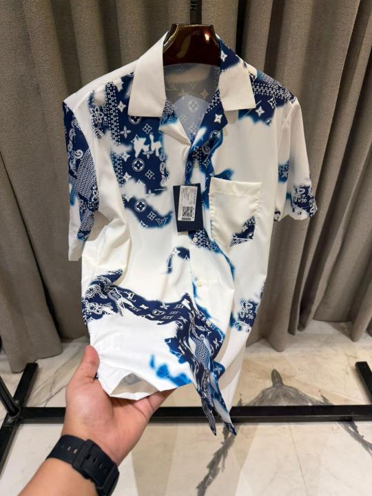 Louis_Vuitton Imported Half Sleeves Shirt Ocean Green