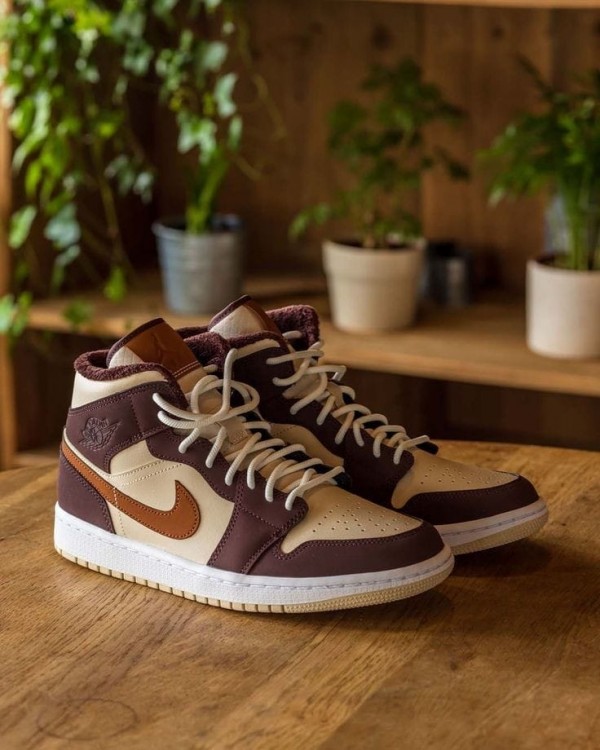 N_ike Air Jordan Retro 1 Mid Brown Basalt Oatmeal Mocha
